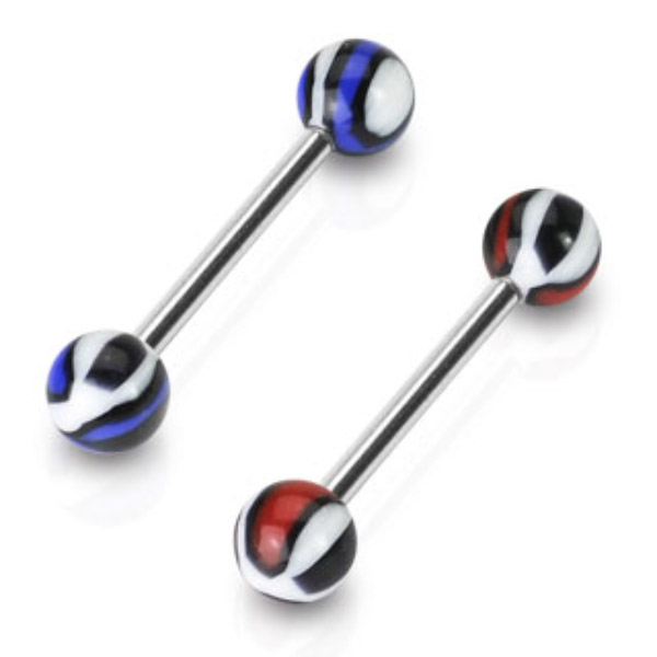 Piercing do jazyka černá/červená 1,6x16x6mmskladem 3 ks39 Kč/ ks32,23 Kč bez DPH