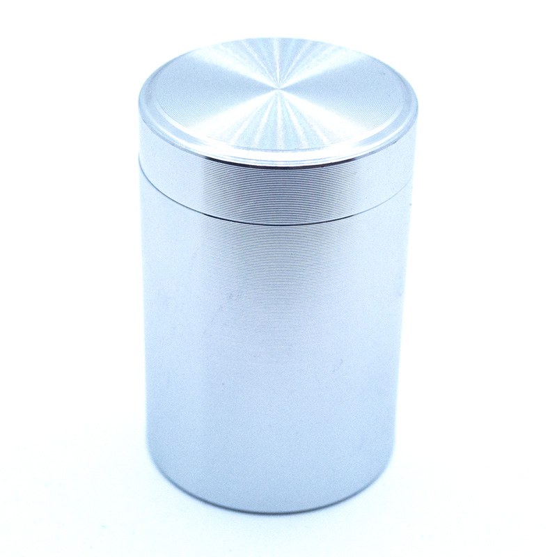 Krabička na CBD, bylinky "filmovka" s víčkem na závit. Tak máte zaručeno, že se víčko v tašce neotevře,  materiál: hliník průměr: 4,5 cm výška: 7 cm celý popis