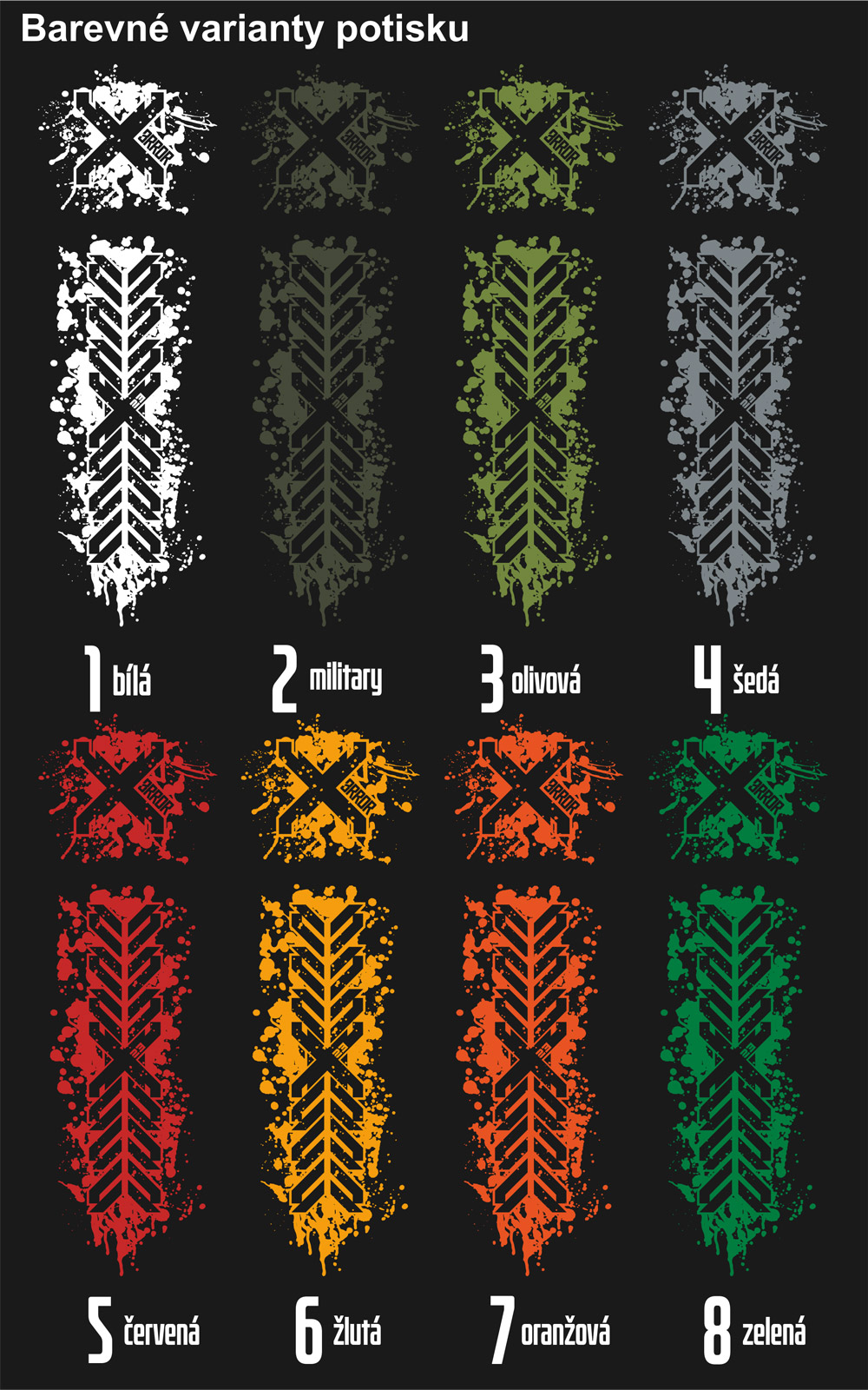 v případě zájmu vyrobíme potisk na přání ve vámi zadané kombinaci, stačí se ozvat na náš email.