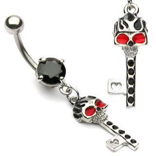 Piercing do pupíku černá lebka klíč
