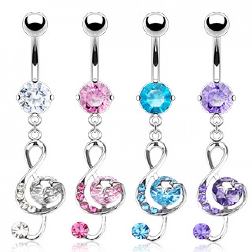 Piercing do pupíku čirá houslový klíč
