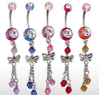 Piercing do pupíku fialová motýl