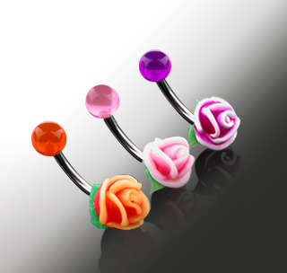 Piercing do pupíku růžová růže