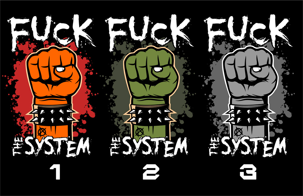 Trička punk tiskneme na kvalitní textil vysoké gramáže. Punk motiv fuck the system je z velice odolného a stálého materiálu, motiv vydrží mnoho praní a vypadá pořád jako nový!