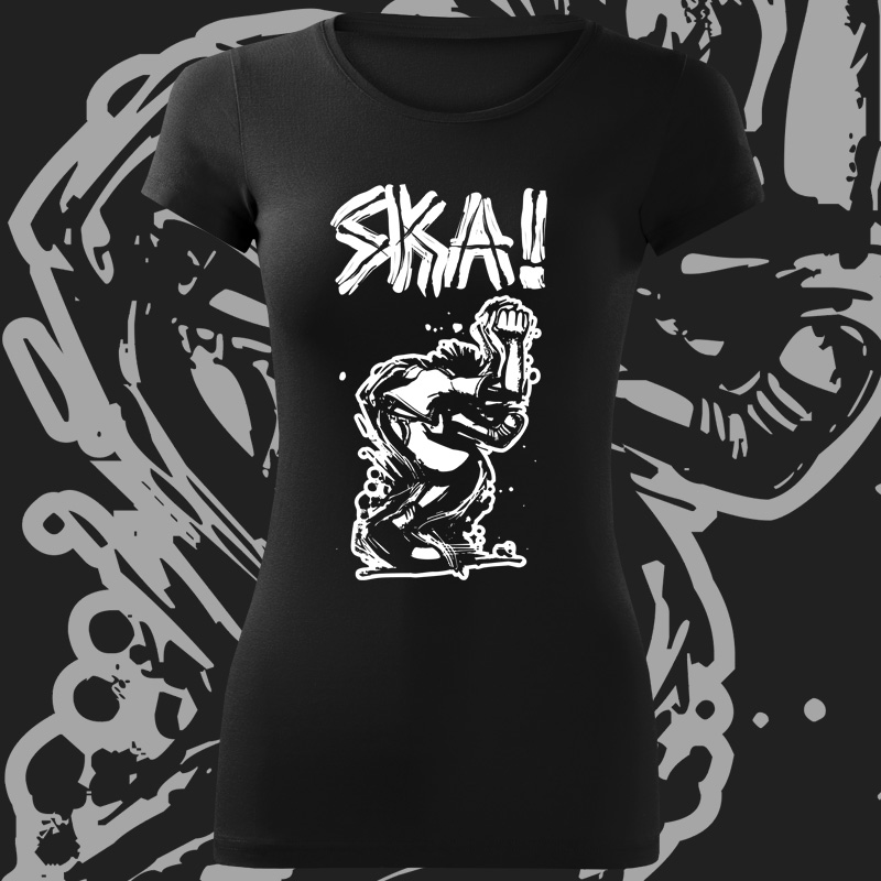 Tričko ska dámské  Ska trička tiskneme na kvalitní textil vysoké gramáže. Ska motiv je z velice odolného a stálého materiálu, motiv vydrží mnoho praní a vypadá pořád jako nový!  Velikosti: S, M, L, XL, XXL  Složení: 180 g/m², 95 % bavlna, 5 % elastan, Single Jersey, Adler Zboží expedujeme do 7... celý popis